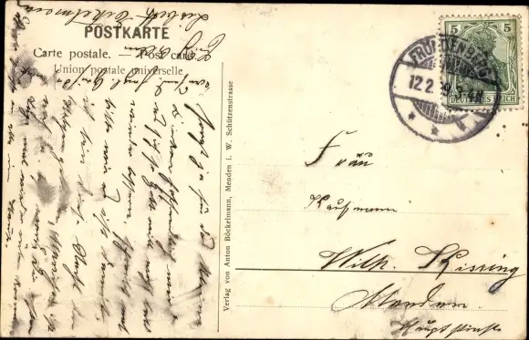 Zustand, siehe Scan, gelaufen- Inh. W. Schmidt - ca 14 cm X 9 cm