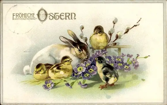 Ansichtskarte, Postkarte, Ostern, Osterhase, Frohe Ostern, Ostereier, Osterfest