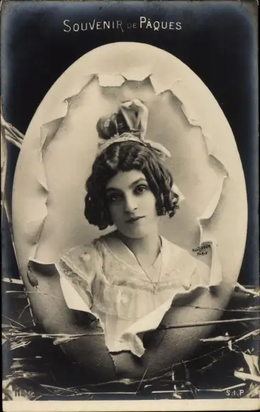 Ak Frohe Ostern, Osterei, Frauenportrait