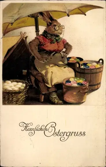 Ak Frohe Ostern, Osterhäsin, Marktstand, Ostereier