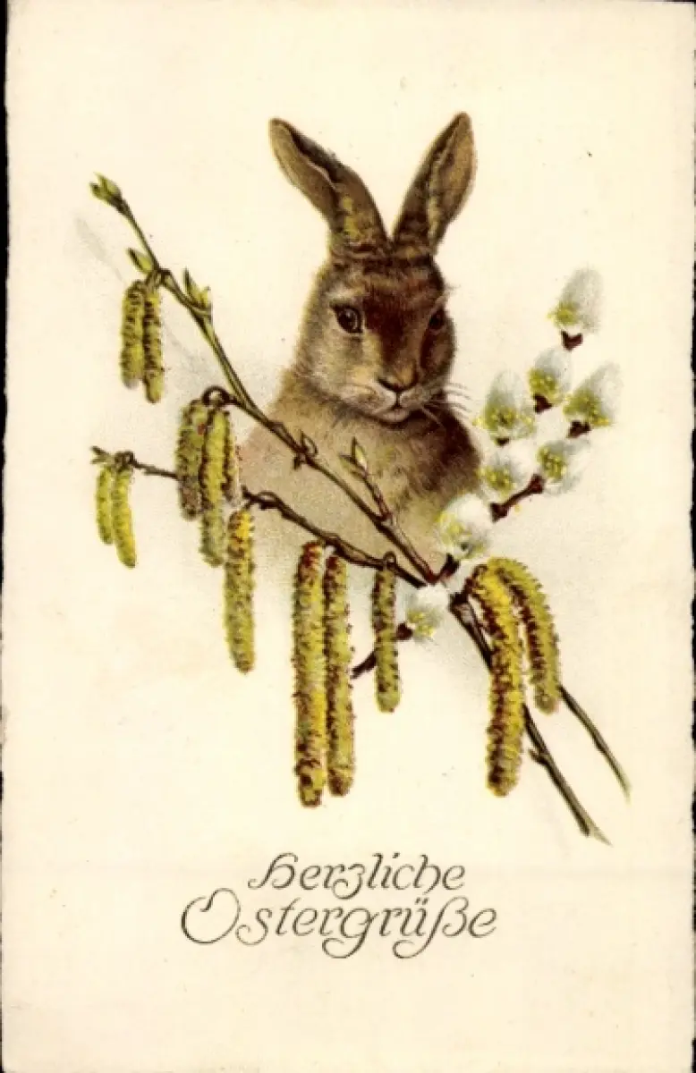 Ak Frohe Ostern, Osterhase mit Weidenkätzchen