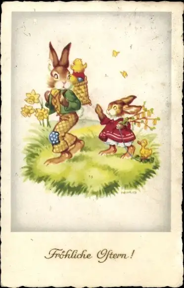 Ansichtskarte, Postkarte, Ostern, Osterhase, Frohe Ostern, Ostereier, Osterfest