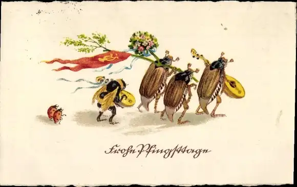 Ak Frohe Pfingsten, Maikäfer, Hummel