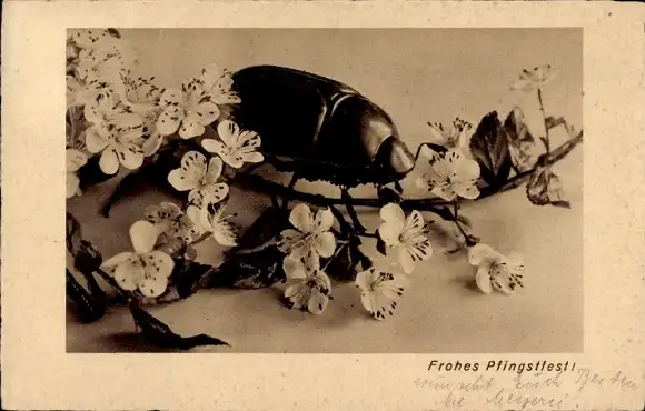 Ak Frohe Pfingsten, Maikäfer, blühender Zweig