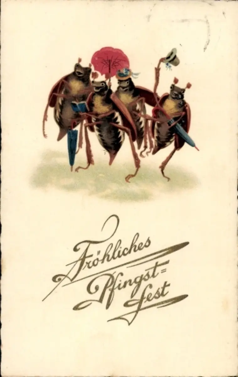 Ak Frohe Pfingsten, vermenschlichte Maikäfer
