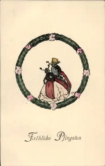 Ak Frohe Pfingsten, vermenschlichte Maikäfer, Paar