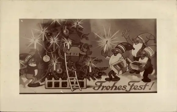 Ak Frohe Weihnachten, Tannenbaum, Zwerge