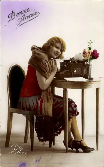 Ak Frohes Neujahr, Frau mit Schreibmaschine