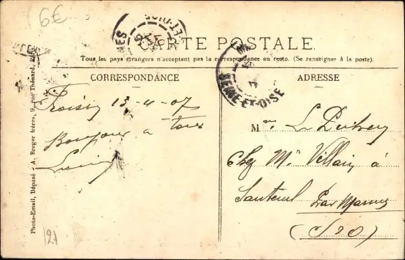 Zustand, siehe Scan, gelaufen, 1907 - ca 14 cm X 9 cm