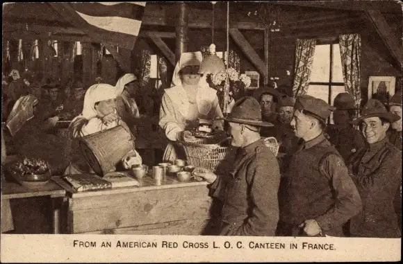 Ak From an American Red Cross LOC Canteen in France, Rotes Kreuz Kantine, I. WK
