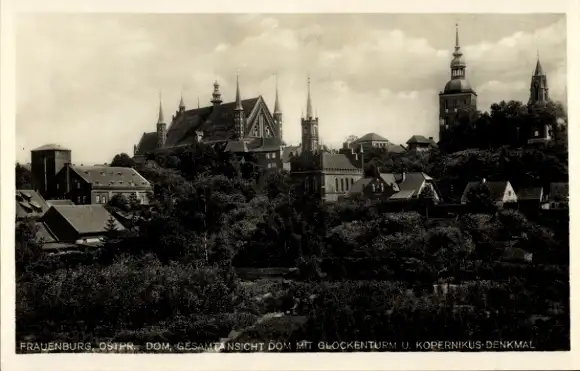 Ak Frombork Frauenburg Ostpreußen, Dom, Glockenturm, Kopernikus Denkmal