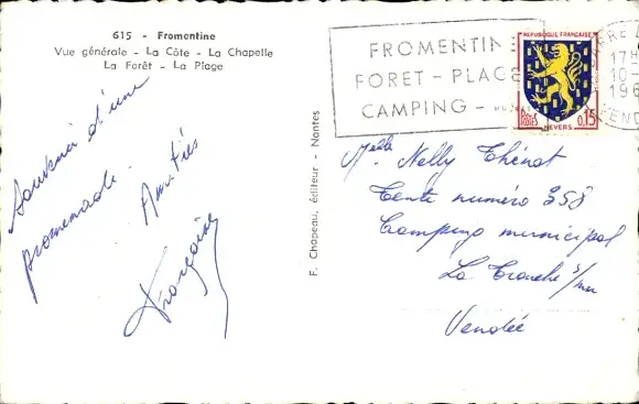Ak Fromentine Vendée, Vue generale, Cote, Chapelle, Foret, Plage