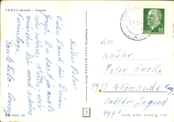 Zustand, siehe Scan, gelaufen, 1957 - ca 15 cm X 10 cm