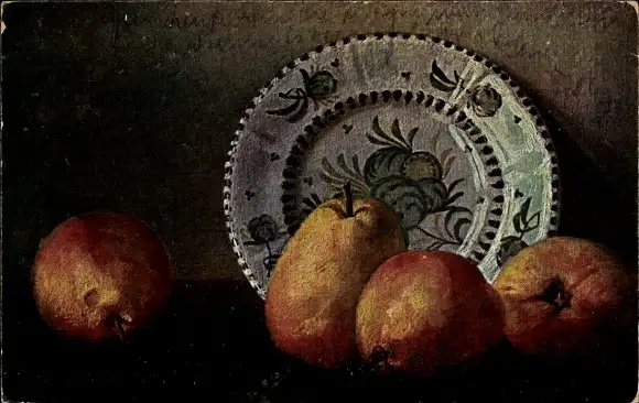 Ak Früchte, Obst, Birnen, Teller