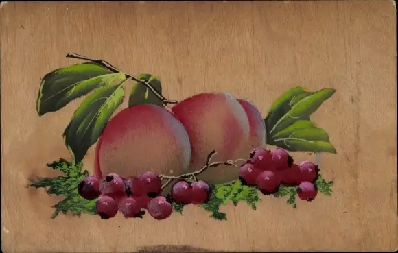 Ak Früchtestillleben mit Beeren und Pfirsichen