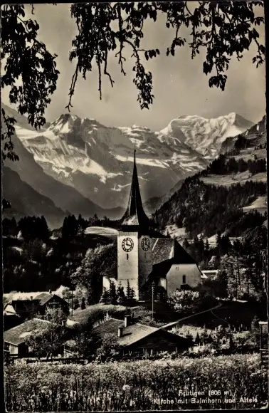 Ak Frutigen Kanton Bern, Kirche mit Balmhorn und Altels