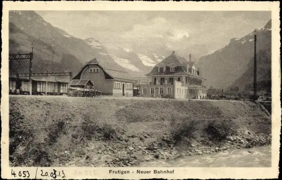 Ak Frutigen Kanton Bern, Neuer Bahnhof
