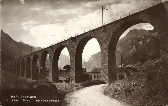 Ak Frutigen Kt. Bern Schweiz, Viaduc du Lötschberg, Lötschbergbahn, Bahnviadukt