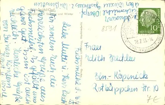 Zustand, siehe Scan, gelaufen, 1955 - ca 5 cm X 3 cm