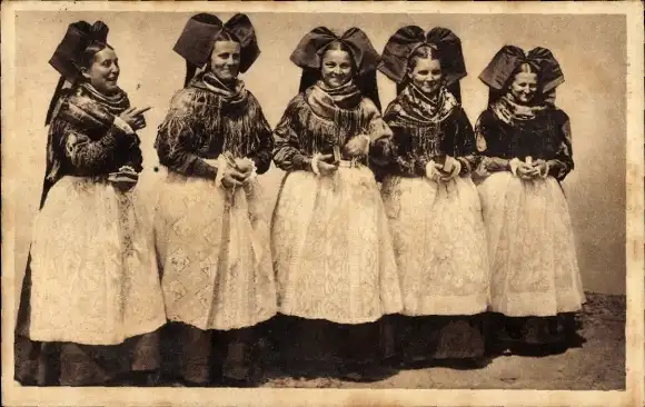 Ak Fünf Elsässerinnen, Elsässer Tracht