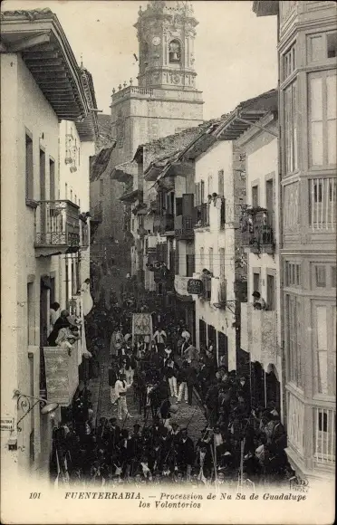 Ak Fuenterrabia Baskenland, Proseccion de Na Sa de Gundalupe, Los Volontorios, Prozession, Kirche