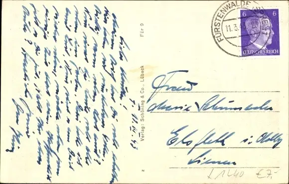 Zustand, siehe Scan, gelaufen, 1943 - ca 14 cm X 9 cm