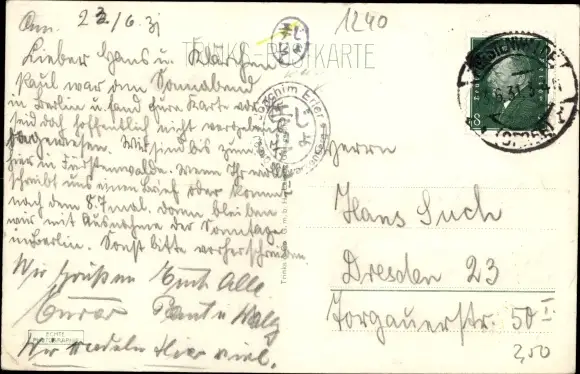 Zustand, siehe Scan, gelaufen, 1931 - ca 14 cm X 9 cm