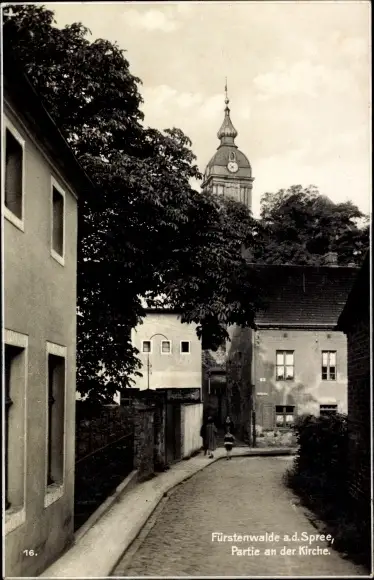 Ak Fürstenwalde an der Spree, Straßenpartie mit Blick zur Kirche