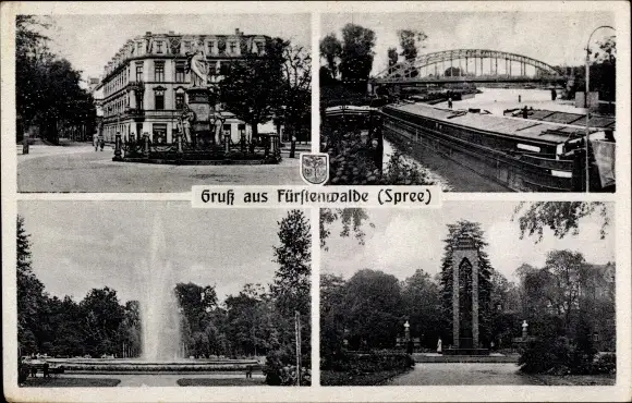 Ak Fürstenwalde an der Spree, Wappen, Brücke, Springbrunnen