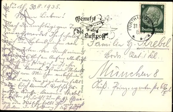 Zustand, siehe Scan, gelaufen, 1935 - ca 14 cm X 9 cm