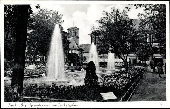 Ak Fürth in Mittelfranken Bayern, Springbrunnen am Freiheitsplatz
