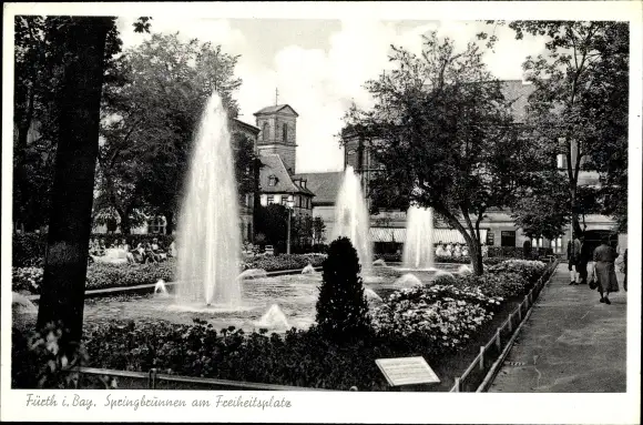 Ak Fürth in Mittelfranken Bayern, Springbrunnen am Freiheitsplatz