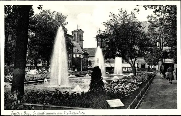 Ak Fürth in Mittelfranken Bayern, Springbrunnen am Freiheitsplatz