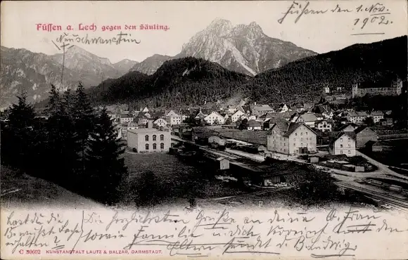 Ak Füssen am Lech Allgäu, Gesamtansicht, Säuling