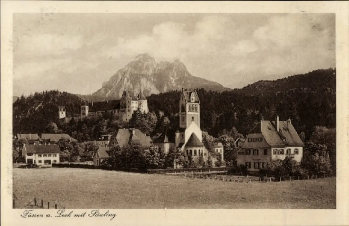 Ak Füssen am Lech Allgäu, Teilansicht, Säuling