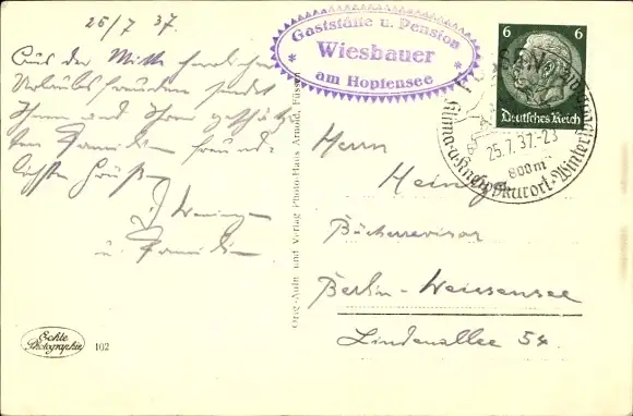 Zustand, siehe Scan, gelaufen, 1937 - ca 14 cm X 9 cm