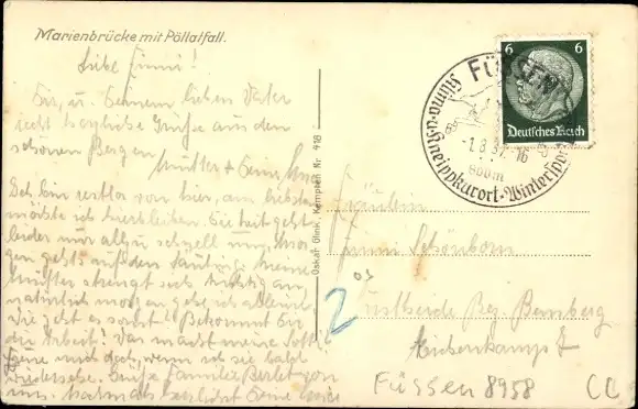 Ak Füssen im Allgäu, Marienbrücke, Pöllatfall
