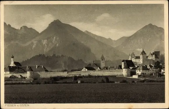 Ak Füssen im Allgäu, Ortsansicht, Blick von Osten