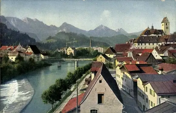 Ak Füssen im Allgäu, Teilansicht, Lech