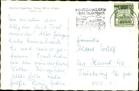 Ak Füssen im Ostallgäu, Gasthof Jägerhaus