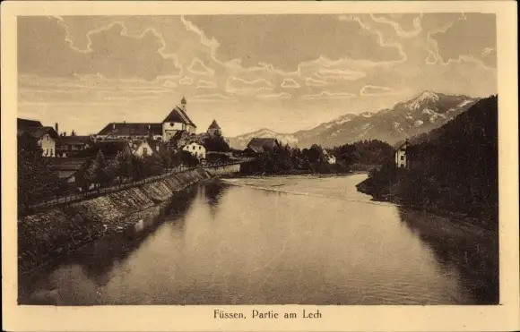 Ak Füssen im Ostallgäu, Lech, Teilansicht