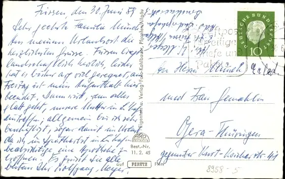 Zustand, siehe Scan, gelaufen, 1959 - ca 14 cm X 9 cm
