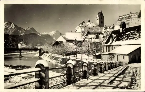 Ak Füssen im Ostallgäu, Teilansicht, Alpen, Winter