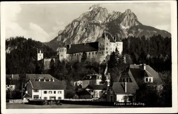 Ak Füssen im Ostallgäu, Teilansicht, Säuling, Burg