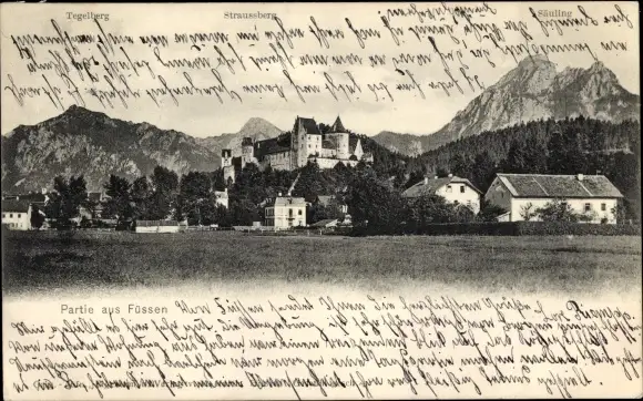Ak Füssen im Ostallgäu, Totalansicht, Tegelberg, Straußberg, Säuling