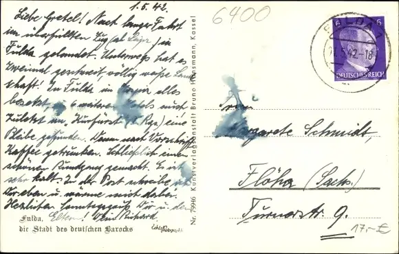 Zustand, siehe Scan, gelaufen, 1942 - ca 14 cm X 9 cm