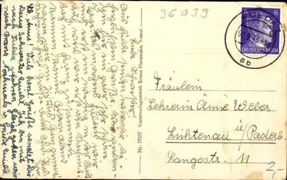 Zustand, siehe Scan, gelaufen, 1943 - ca 14 cm X 9 cm