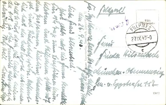 Zustand, siehe Scan, gelaufen, 1940 - ca 14 cm X 9 cm