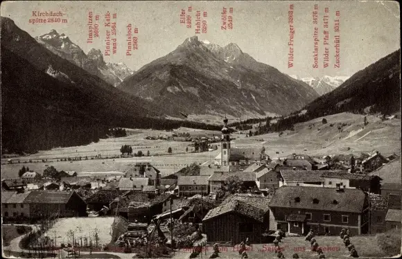 Ak Fulpmes in Tirol, Ortsansicht vom Hotel Serles aus, Kirche, Bergpanorama