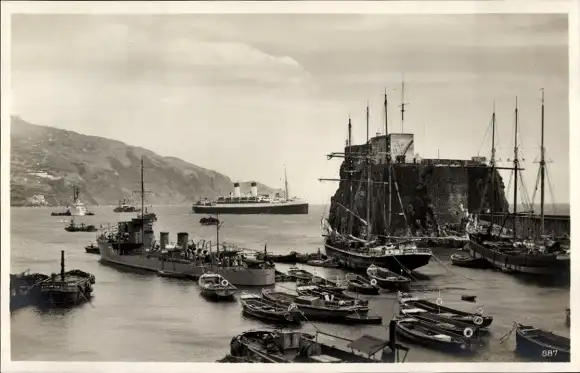 Ak Funchal Insel Madeira Portugal, Fort Ilheo, Schiffe